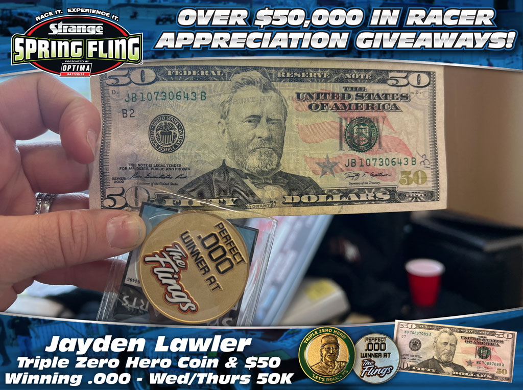 Triple Zero Hero Coin & $50 Winning .000 - Thurs Sponsor: Spring Fling