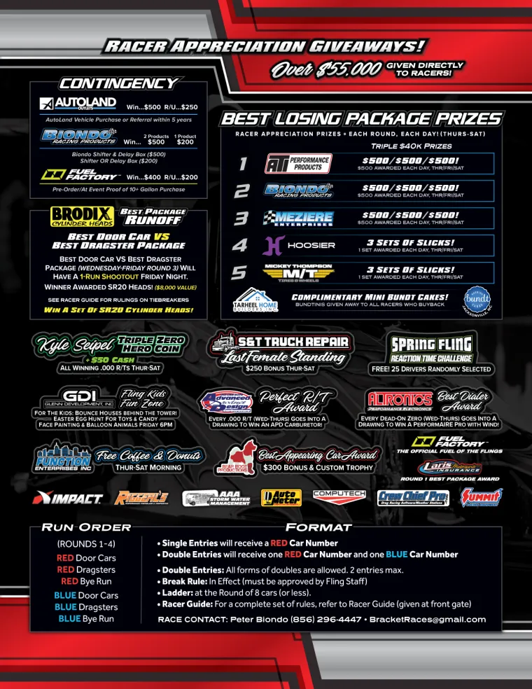 Spring Fling Million, Spring Fling Galot, Summer Fling Bristol, Fall Fling Bristol and Bracketraces.com are registered trademarks and may not be rebroadcasted or used without consent. See our Privacy